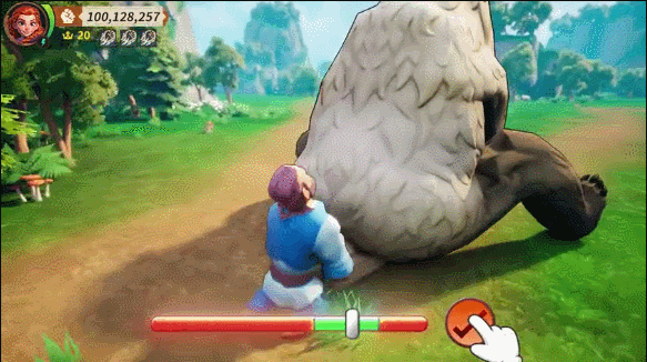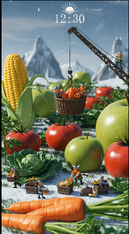 游戏近期的第三类素材则采用了AI技术,让小人单位去采集巨大化的资源,形成视觉反差和冲击。该类素材中同样没缺少指示时间动态变化的元素。