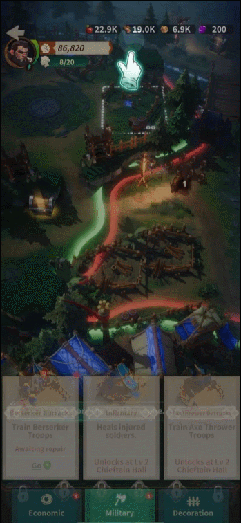 作为一款在2025年上线的SLG手游,如何设计前置包装玩法显然是外界会关注的一大焦点。《Fate War》采用了一个“小队被野兽包围,需要砍树烧火保护自己”的简单故事作为开场,玩家根据屏幕指示点击即可通过。