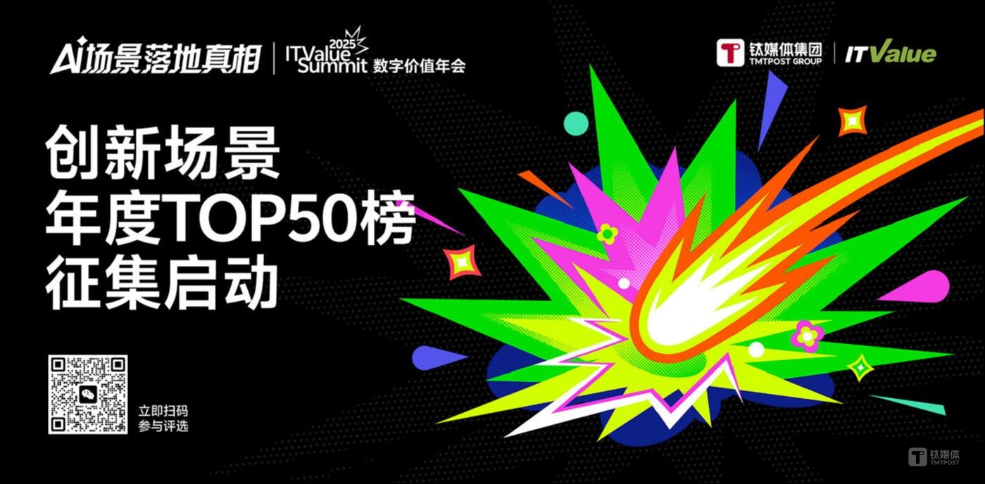 9月11日-14日由钛媒体集团、ITValue联合主办的2025 ITValue Summit数字价值年会将以「AI落地场景真相」为主题,与新老朋友重聚三亚,并在全年围绕1场年度演讲,5大ToB明星IP持续内容“造血”,设计N个场景的想象空间,打造1本《AI落地场景指南》,一同解决AI实际落地应用背后的“10大问题”,探索数字经济时代的变革和机遇。(点击进入了解更多大会报名信息)