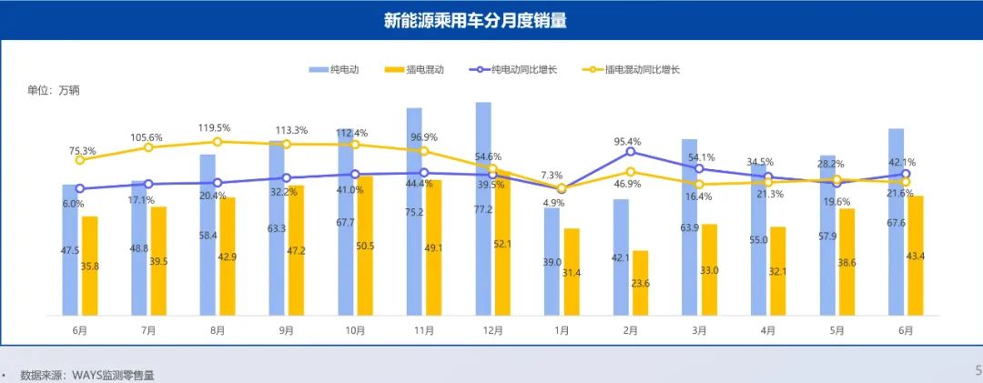 无论是从销量上看,还是从销量增速上看,今年上半年,纯电动新能源车的市场表现都要更好。中汽协数据显示,1-6月,纯电动车型累计销量为441.5万辆,同比增长了46.2%,插电式混合动力车型累计销量为252.1万辆,同比增长了31.1%。