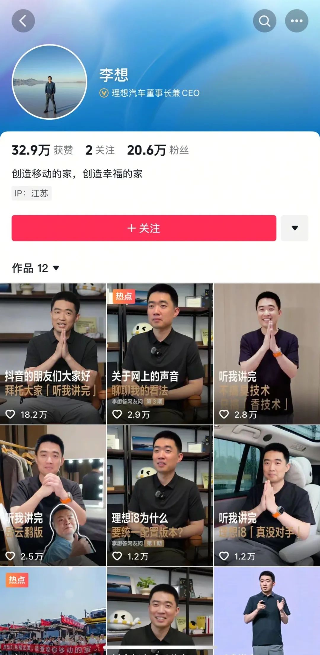 图/李想个人抖音账号主页