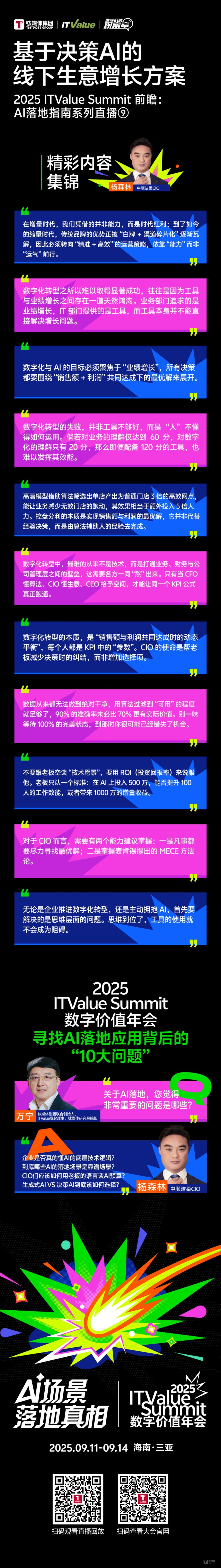 杨森林:是(像您描述)这样的。其实这次我更多想分享的不是AI产品、解决方案,而是作为CIO的思维理念。想要做一个有更大价值的CIO,一定要突破自己的就是最优解这三个字。这三字是贯穿我们产品全生命周期几十个节点的。
