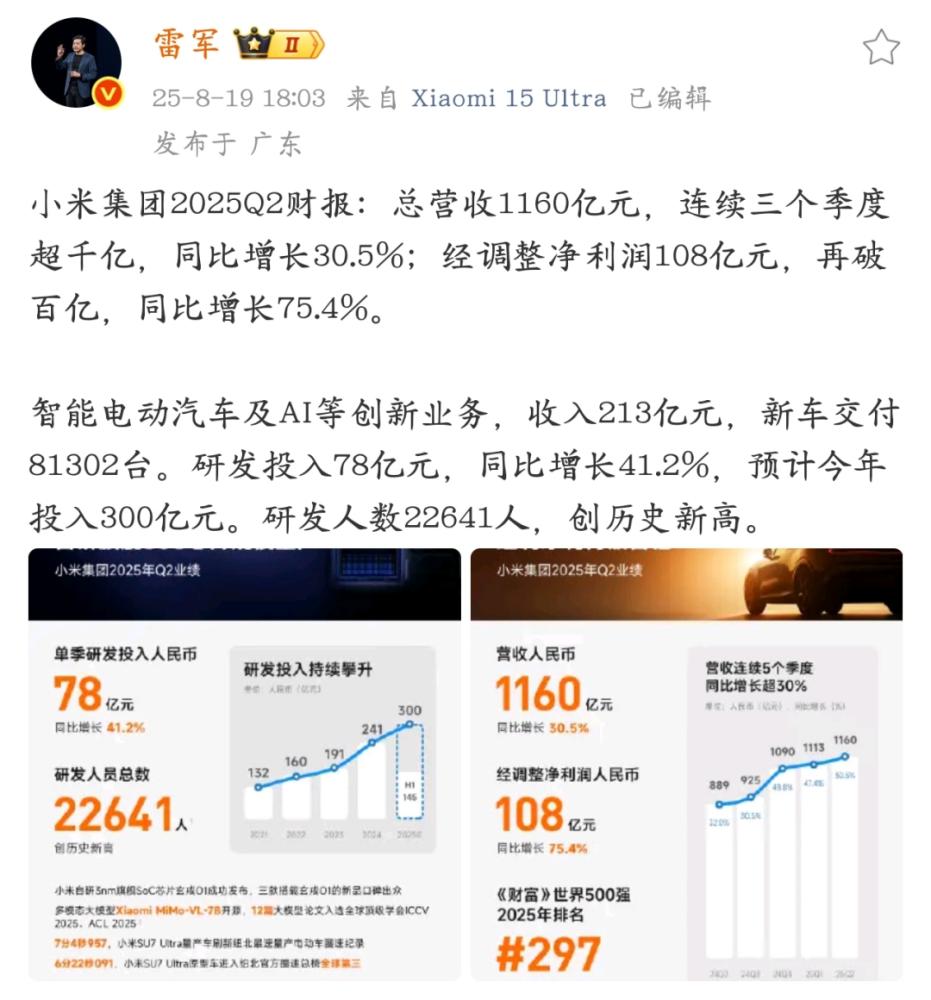 亮眼的数据,彰显了集团强劲的创收创利实力,也持续向市场证明小米“史上最强财报”的名头。