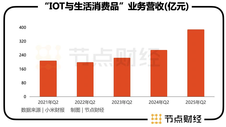多点开花,本期小米“IoT与生活消费品”板块延续高增态势,营收同比增长44.7%至387亿元,收入占比进一步扩大至33.4%,凸显和智能手机分厅抗衡的底气。