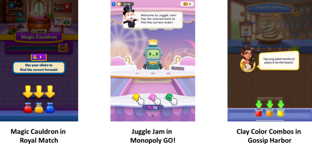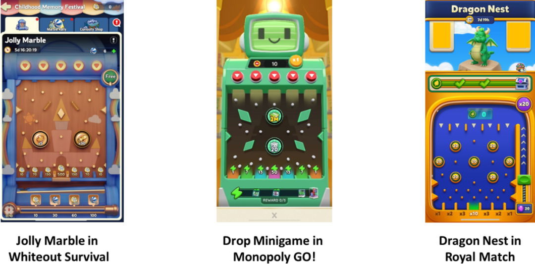 像《Royal Match》和《Monopoly GO!》这样的休闲游戏,还通过小游戏加快运营节奏。通过复用标准化的小游戏模版,他们能快速运行多个不同主题的活动,满足不同玩家需求的同时,也降低了制作成本。