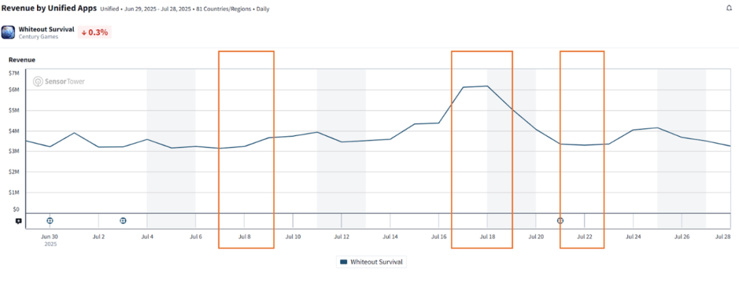 类似的情况也出现在《寒霜启示录》的「Marvelous Fantasia」活动(麻将式消除玩法)上。但并非所有小游戏都能带来成效,例如他们在2025年7月底推出的「Fishing Tournament」玩法活动就未能带来收入增长。因此,开发者需要不断试验并优化适合自己游戏的小游戏类型、奖励和上线频率。