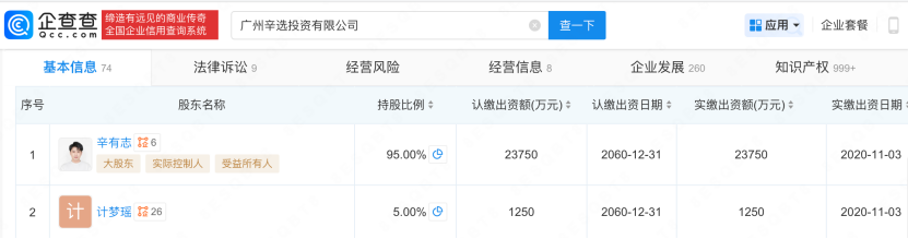 如今,辛巴只是退居幕后,仍实际控制辛选。企查查显示,辛有志(辛巴)是广州辛选投资有限公司的第一大股东,持股比例为95%。也就是说,辛巴的退网,并不影响辛选继续为快手创造GMV。