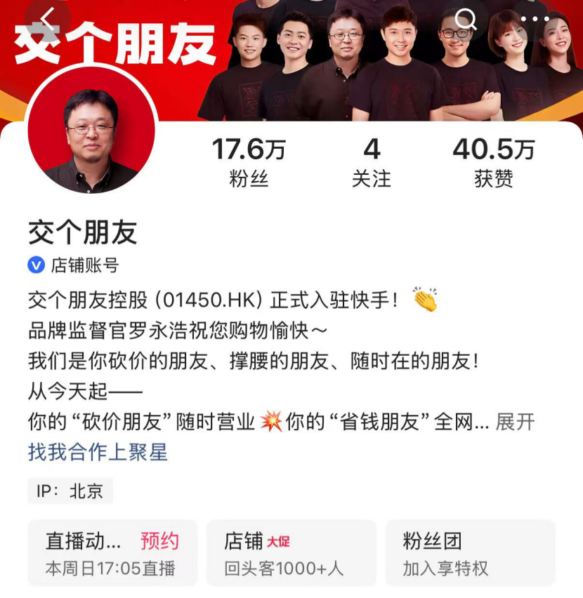 五年前平台未能引入的罗永浩,如今通过交个朋友入驻快手。
