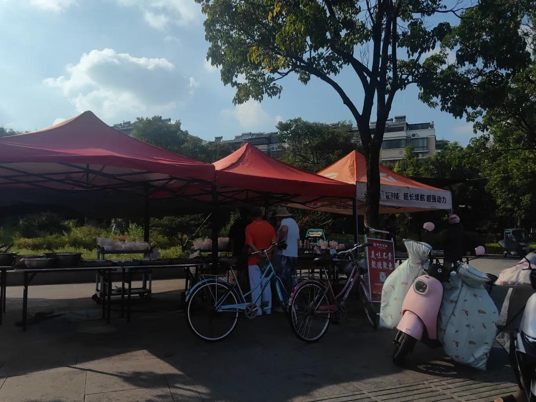 ● 宿迁当地一家酒楼,下午5点左右在店门口摆摊。图源:受访者
