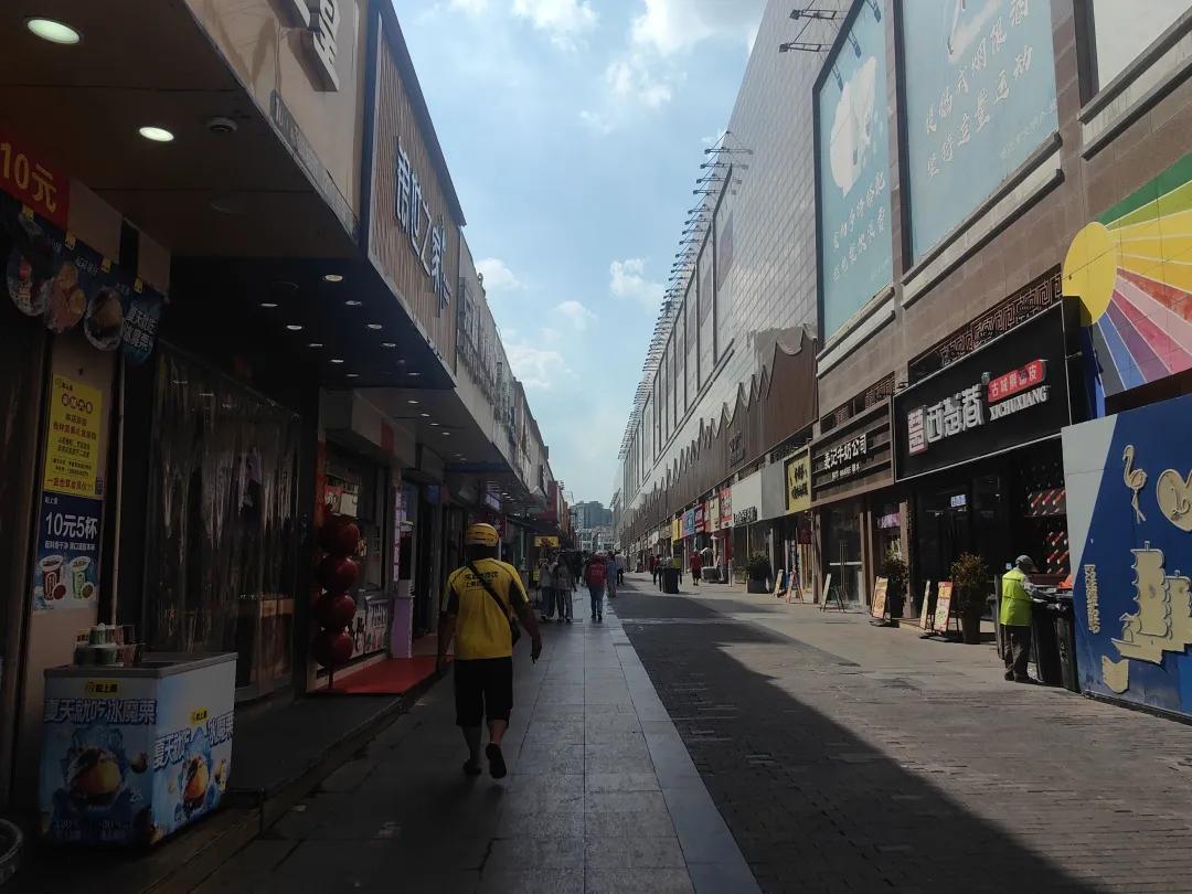 ● 中午饭点的宝龙后街十分清冷,偶见骑手匆匆走过。图源:受访者