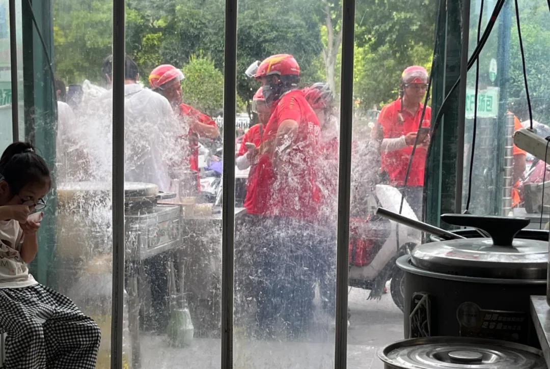 ● 宿迁一家早餐店前,准备送餐的京东秒送骑手。图源:受访者