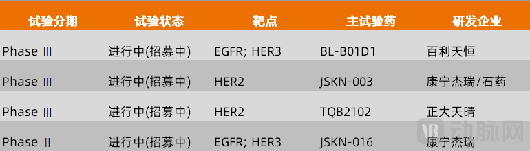 在这个领域中,处于Ⅲ期临床试验阶段的是百利天恒的BL-B01D1、康宁杰瑞和石药集团合作的JSKN-003、正大天晴的TQB2102,这几家企业的进展目前处于领先地位。