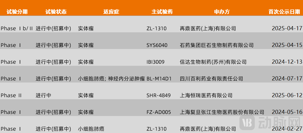 图7. 目前进入临床阶段的DLL3靶点药物(数据来源:医药魔方,动脉网整理)