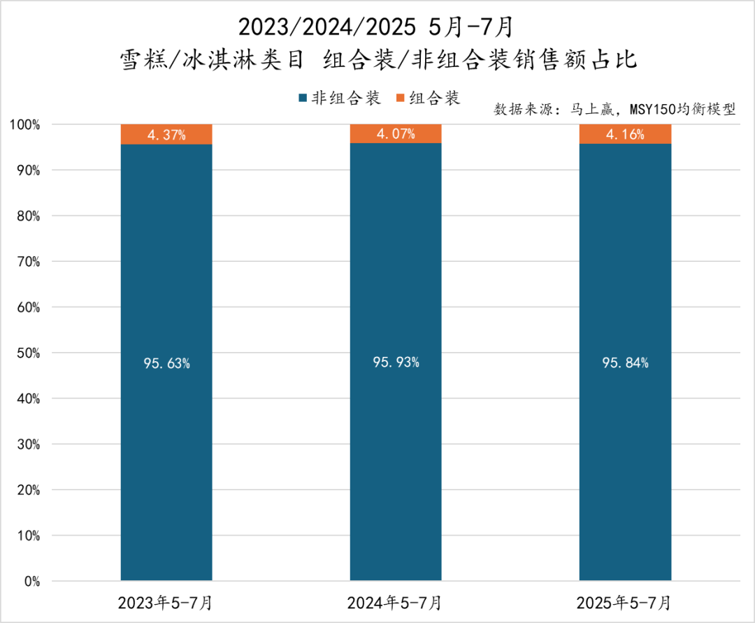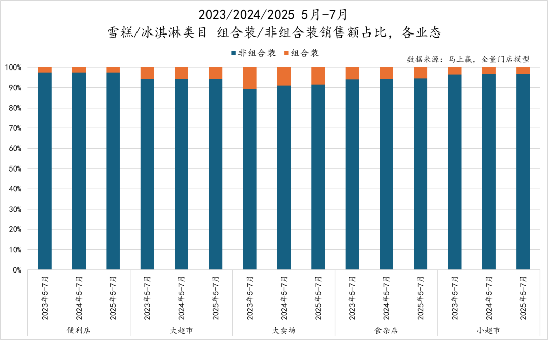 从销售额占比来看,雪糕/冰淇淋市场由非组合装产品占据绝对主导地位,对于即食即饮属性极强,且保存条件要求苛刻的产品来说,买后即食依然是类型产品最常规的消费路径。