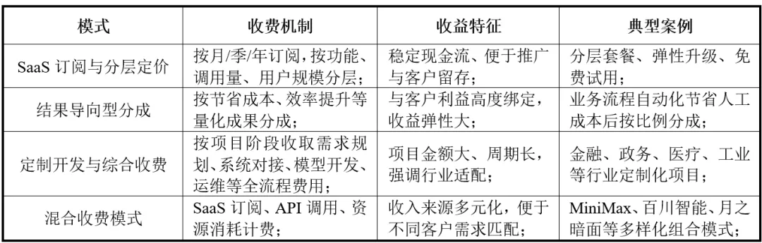 表2:AI Agent行业盈利模式 资料来源:融中咨询