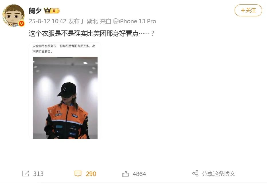 所以,在争取为骑手提供更丰富的回报、更安全的保障、更合理的算法之外,回到「人靠衣装」的原点,还要试着给他们定制一身体面且值得骄傲的衣服,可能真的同样是一种刚需。