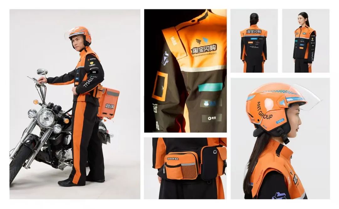 最早是在淘宝闪购组织的闭门座谈会上,邀请了一些骑手参加,提前试穿了橙黑配色的秋季工装,现场流出的图片显示,这身衣服的样式和F1赛车服极为相似,有种莫名的运动时尚感。
