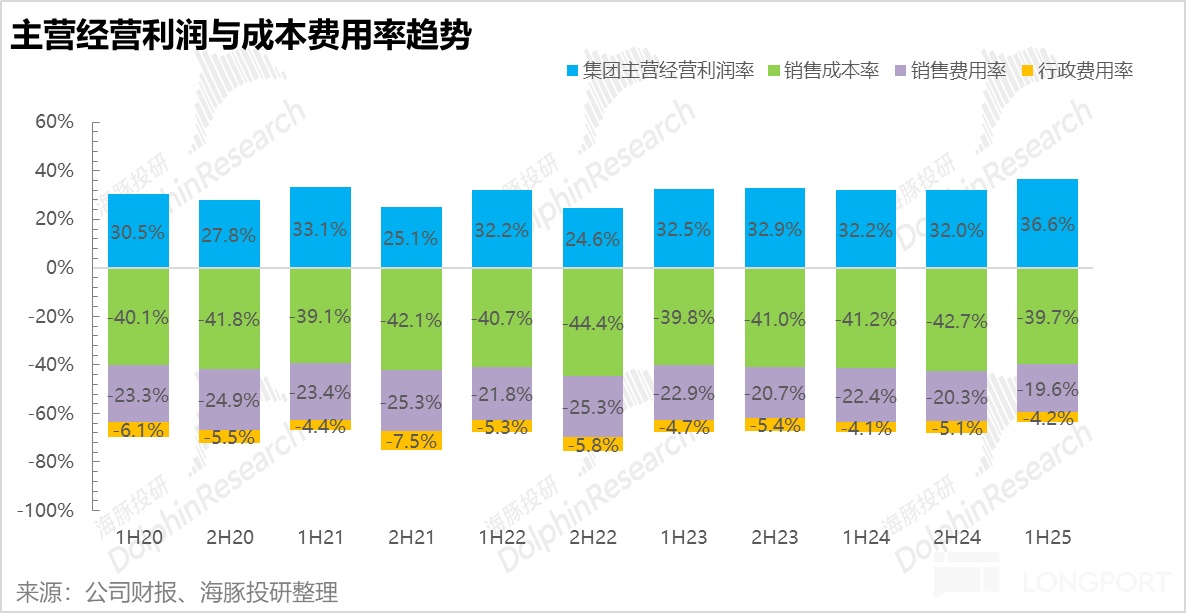 毛利率上,一方面公司的关键原材料和包材(PET,瓦楞纸)上半年价格下降,叠加红瓶水以及其他高毛利品类(无糖茶、NFC 果汁)占比的提升,25H1 公司毛利率小幅提升 1.5pct 达到 60.3%。