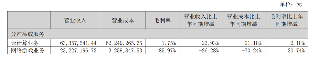 但同时需要注意的是,发力AI、云计算等前沿技术,需要大量的资金投入,这也决定了,向科技公司转型的这些游戏游戏公司,在短时间内很难交出亮眼的财报。今年上半年,中青宝来自云计算业务的毛利率仅为1.75%,公司亏损的局面也没有改变。昆仑万维则“增收不增利”,报告期内,公司虽然拿到37.33亿的高额营收,但净利润却亏损8.56亿,同比下降119.86%。
