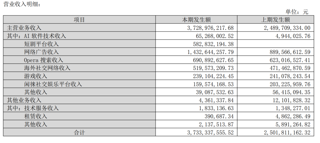 公开数据显示,截至今年3月底,DramaWave累计下载量已突破3000万次,月活跃用户超过1000万。另根据财报中披露的数据,截至报告期末,平台年化流水收入ARR突破2.4亿美元,单月流水收入突破2000万美元。基于此,今年上半年,DramaWave为昆仑万维贡献5.83亿营收,已经成为公司第三大收入来源。