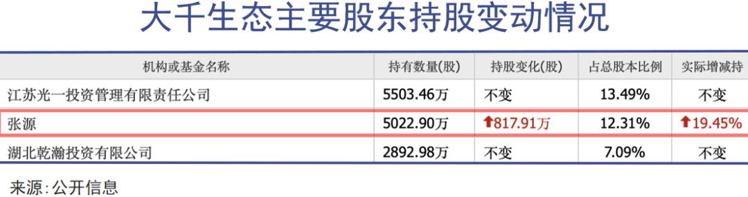 2024年11月时,张源旗下苏州步步高投资耗资3.68亿元入主大千生态。受近些年园林行业项目减少等影响,大千生态遭遇生存困境,营收仅有1亿元左右,利润逼近亏损边缘。