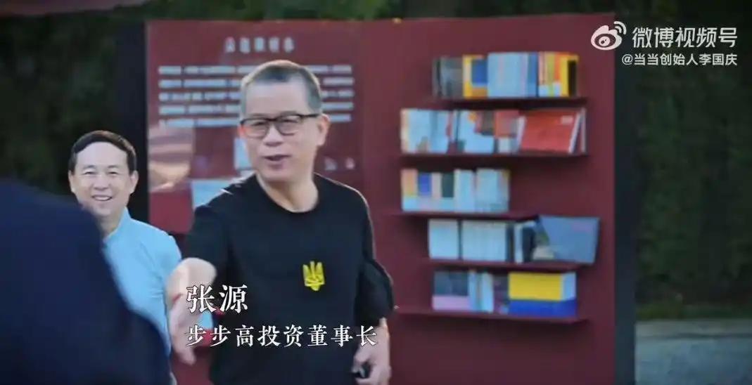 但其中一位大佬,却因争议性穿着迅速成为网络热议的焦点。步步高投资董事长张源当天身着一件黑色T恤,但眼尖的网友指出,他衣服上的三叉戟图案神似乌克兰国徽,有部分网友认为,这暗示了其某种政治倾向。