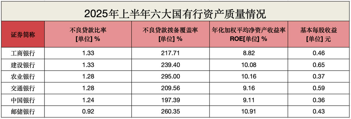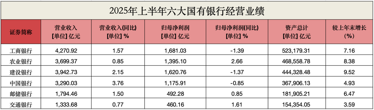 目前,六大国有银行2025年中报已全部披露完毕。