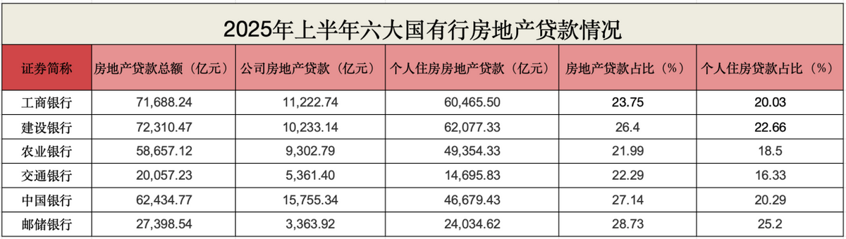 值得一提的是,2025年上半年,六大国有行的公司房地产贷款都有所增长。