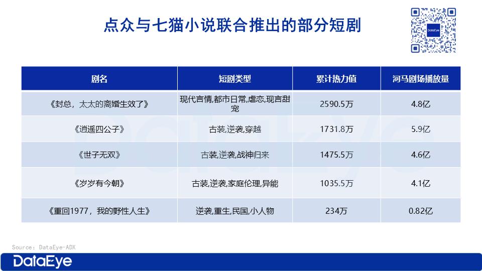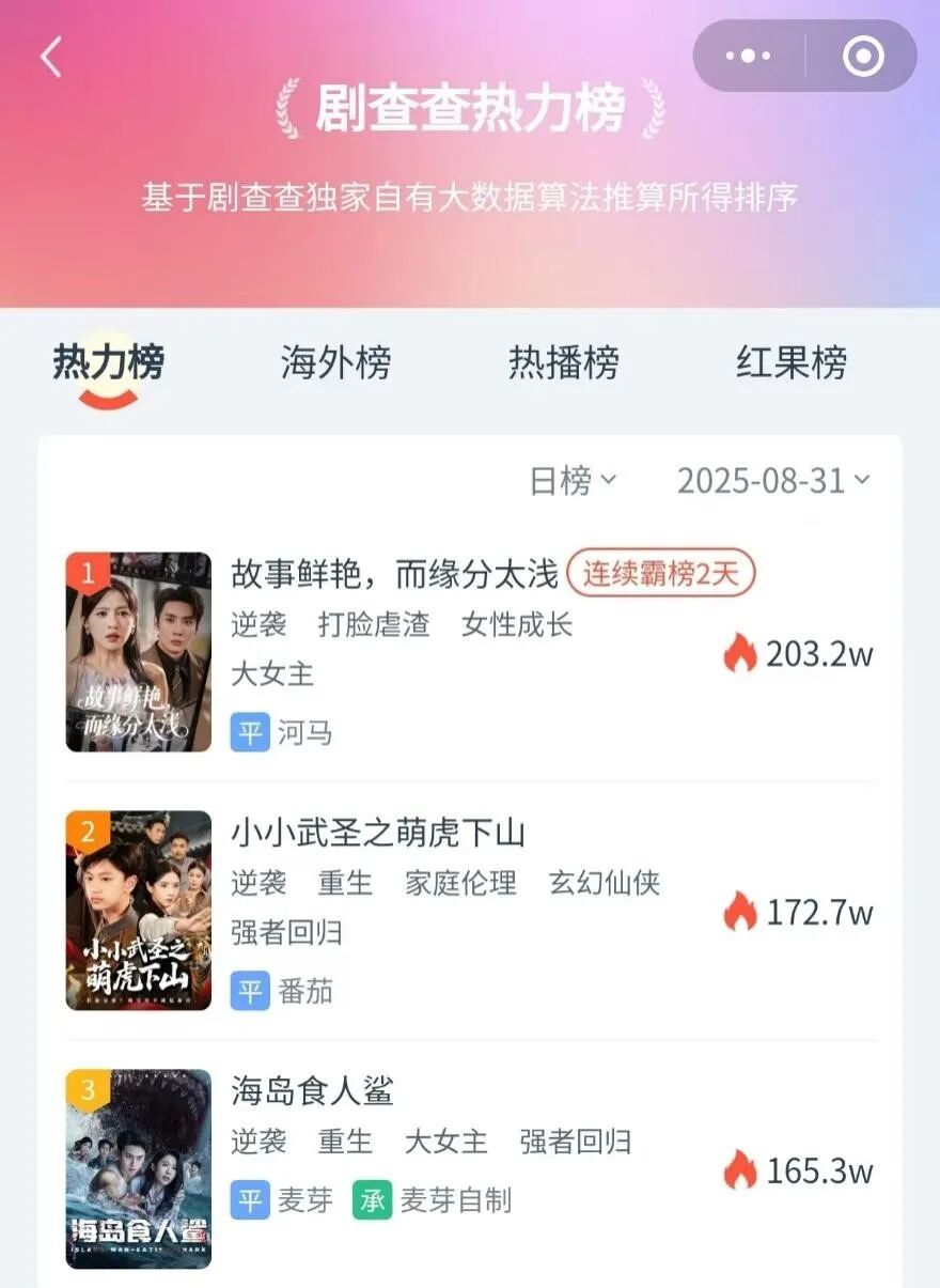 目前,花生、爱奇艺、天桥、快创、九州、掌阅等头部合作方已与平台形成“内容供给-分账回报”的良性循环。例如,爱奇艺出品的《掌上珠》播放量达3.8亿次,分账金额进入单月TOP10;花生出品的《肥妻皇后不好惹》播放量达2.2亿次。