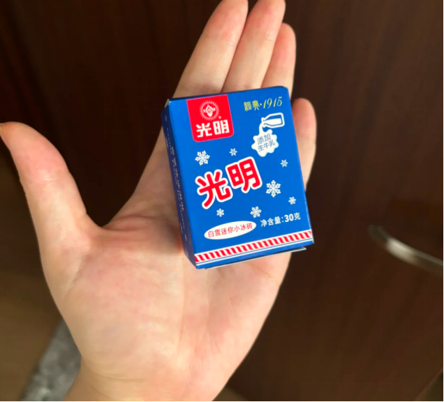 光明的冰砖也变成了“冰格”,一块30g,一两口的分量,甚至被开发出了新吃法——早上咖啡里放一颗当雪顶。