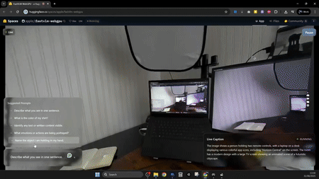 除此之外,苹果同样准备了一个叫做FastVLM-Web GPU的项目,它可以通过摄像头实时分析视频流。你可以在下面这个位置找到它,点击即可使用: