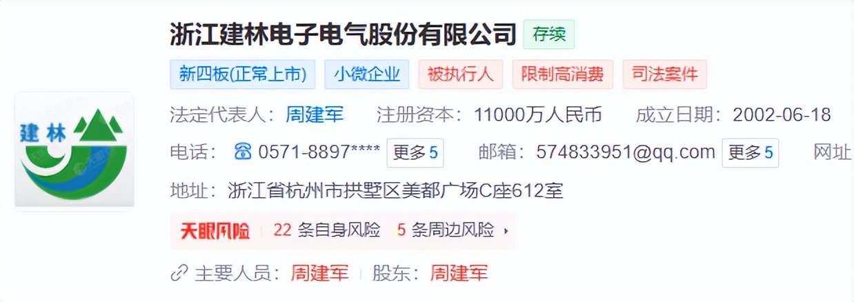 目前周建军共关联6家企业,其中建林股份等两家企业已被法院列为限制高消费企业。今年,建林股份已经三次成为被执行人,执行标的分别为6.68万元、1.5万元和513.2万元,周建军也因此被限制高消费。