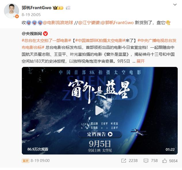 △ 郭帆导演为《窗外是蓝星》打call