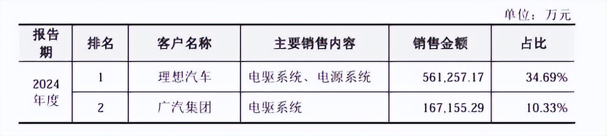 招股书显示,2022年至2024年,联合动力对前五大客户合计销售金额为36.1亿元、71.2亿元和109.7亿元,占总营收比例为71.73%、76.03%和67.81%。其中,理想贡献收入占总营收比例为29.01%、19.93%、34.69%,分别是公司的第一大、第二大和第一大客户。