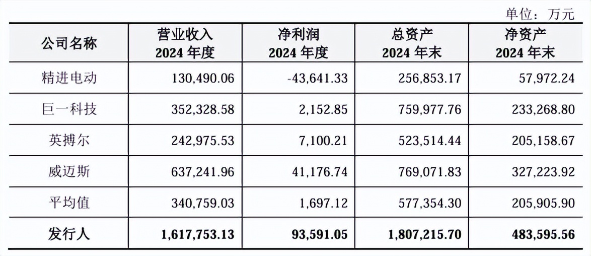 这样的业绩,放在业内处于何种水平?据可比公司精进电动、巨一科技、英搏尔和威迈斯的经营情况显示,2024年,这四家公司的营收和净利润平均值分别为34亿元、0.17亿元。对比前述联合动力的相关数据可见,均远超平均值。
