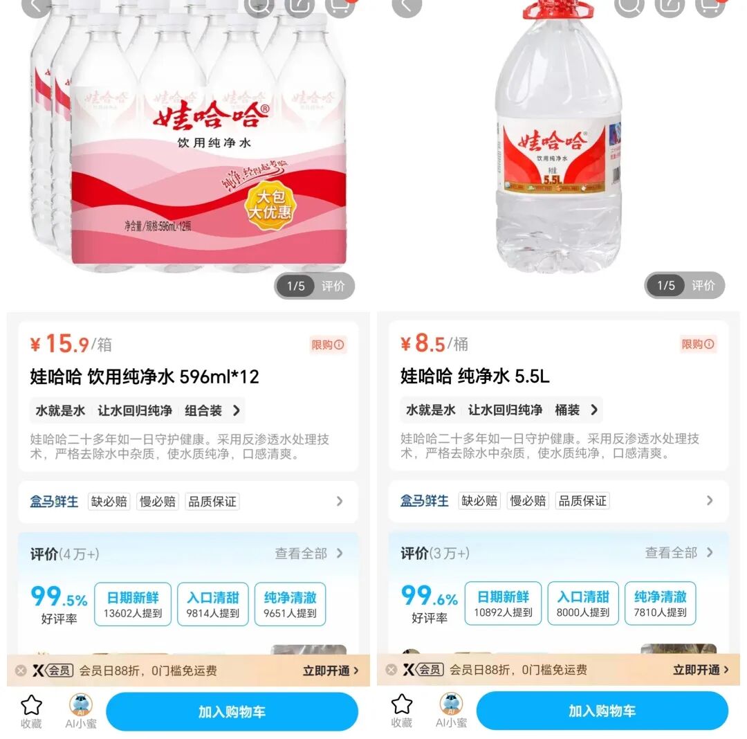 在水的业务上,过去主战场在低线城市的娃哈哈,今年通过全家、盒马等渠道,挤进一线市场。2024年以前基本不在广州售卖的娃哈哈饮用水产品,通过美宜佳的一万多个点位,成为各大零售终端的常规商品。