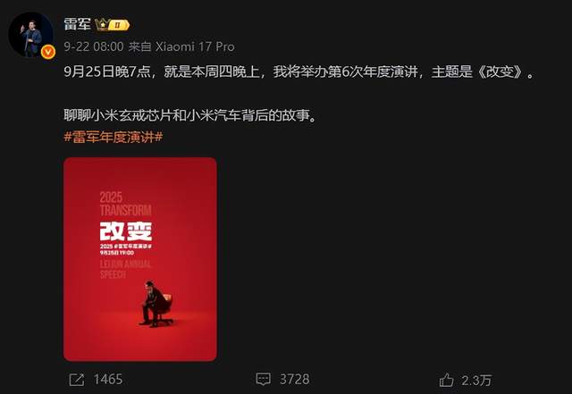 早在9月15日,雷军就发文称,小米17系列,产品力跨代升级,全面对标iPhone,正面迎战。