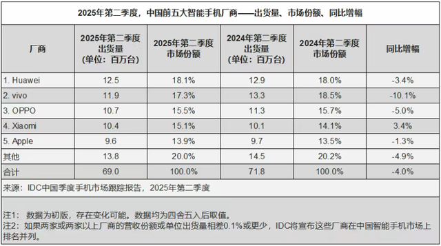 根据IDC的数据显示,就在2025年第二季度,华为已凭借18.1%的份额重夺中国市场出货量第一的宝座。而苹果,则以13.9%的份额,滑落至第五。华为的强势归来,成了苹果在中国高端市场“躺赢”时代的终结者。