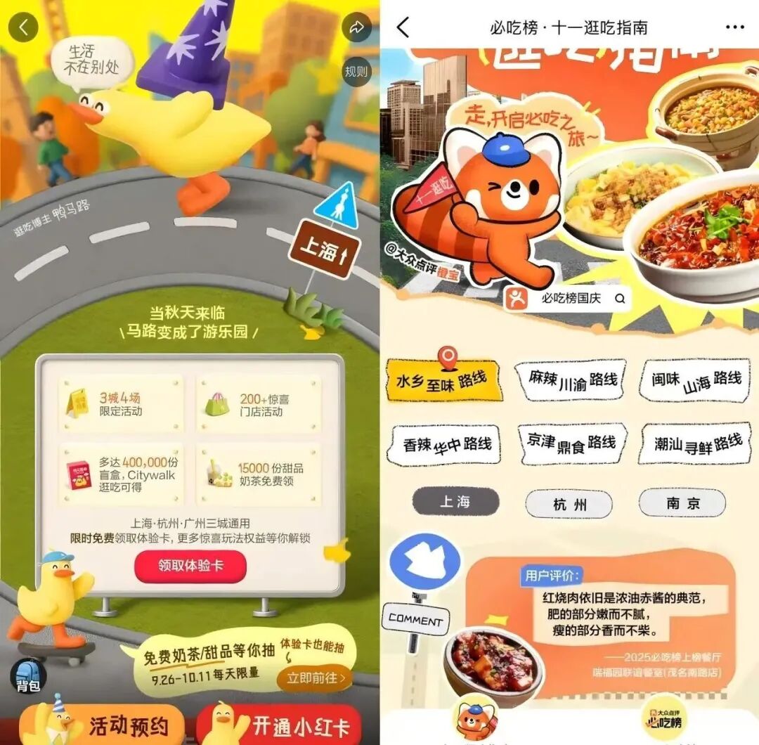 社交媒体上,有不少用户和探店博主们也在这个国庆用“榜单”包揽吃喝玩乐的一切,背后的原因很直接——平台在疯狂撒券。