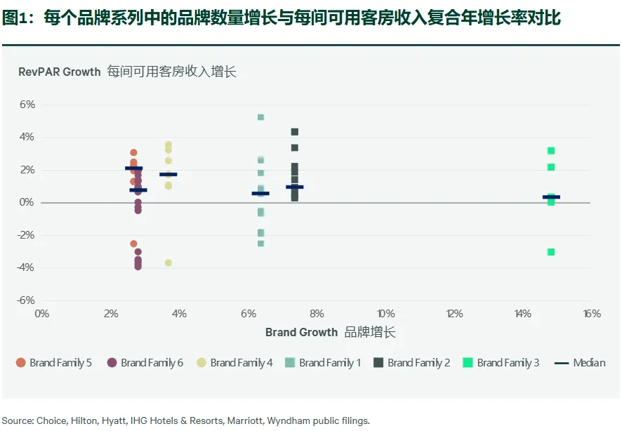 然而,自2019年以来,品牌数量增长最快的品牌家族(复合年增长率为15%)却录得最慢的中位数每间可用客房收入复合年增长率,仅为0.3%。