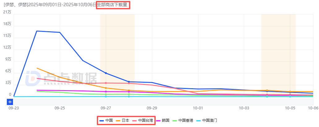 《伊瑟》新上线6大区域市场下载量趋势