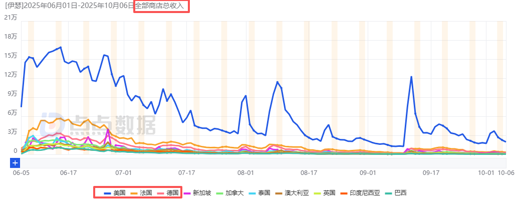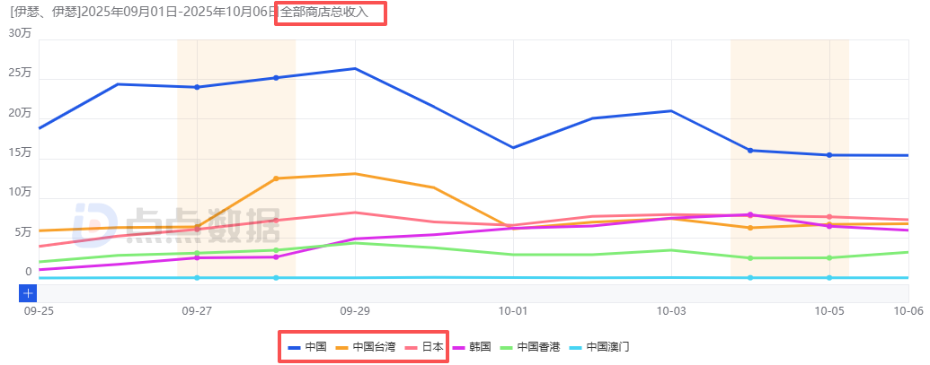 《伊瑟》新上线6大区域市场流水趋势