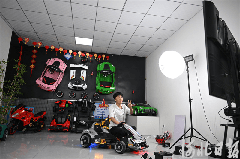 平乡县打造的河北童车玩具供应链直播基地,已搭建80余个直播间,吸引300多家商家入驻平台。基地免费提供直播间,每个月还会邀请电商行业的专家,来基地进行创业、直播等方面的培训。