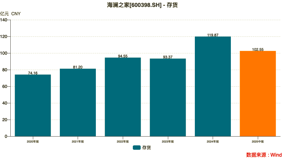 实际上,早在2017-2019年,海澜之家的不可退存货规模就已逐年增长,从24.56亿元涨至42.53亿元。意味着,供应商越发不愿意替海澜之家承担存货风险。从2025上半年海澜之家高企的存货数据推断,不可退存货规模或仍在增大。