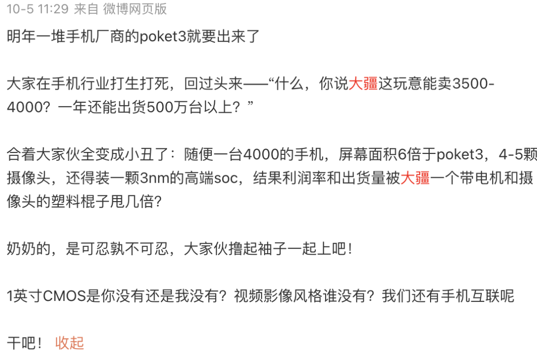 以Pocket 3产能初期的核心瓶颈——那块一英寸影像传感器为例,手机厂商不仅能以更具竞争力的价格采购,更能确保获得稳定且充足的供应,这恰好直击了大疆最关键的痛点。