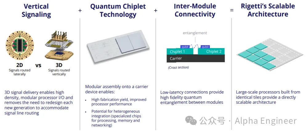 首先,Rigetti的核心优势在于其突破性的模块化芯片架构(chiplet技术) ,这是全球首个实用化的多芯片量子处理器设计。