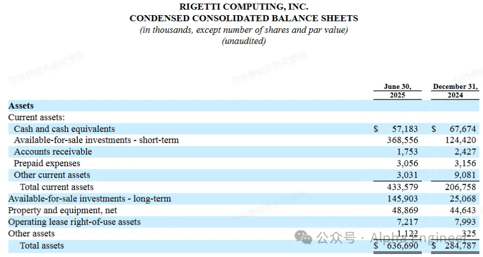 图:Rigetti 25Q2资产负债表,AlphaEngine