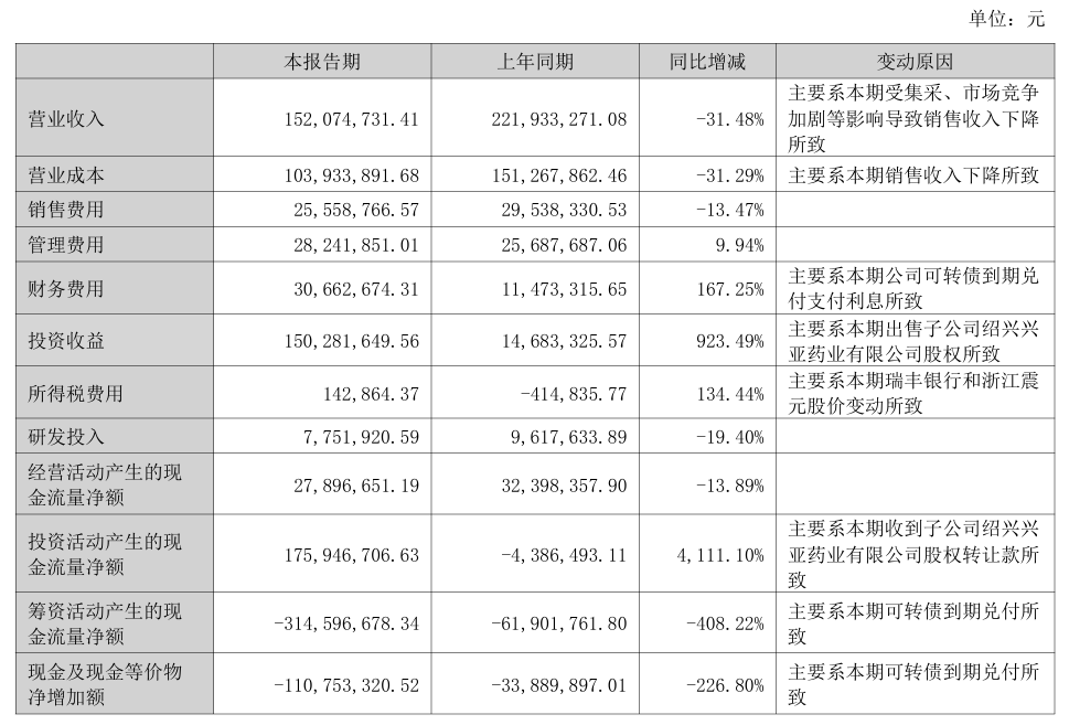 其中,归母净利润暴涨主要系公司出售全资子公司绍兴兴亚药业有限公司100%股权,相应增加公司2025年半年度利润总额约1.49亿元所致;剔除上述非经常性损益项目的影响,亚太药业的亏损底色未变。