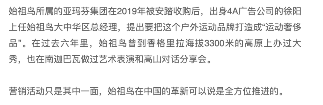 始祖鸟的奢侈品营销定位,以及通过与艺术家合作呈现影像的方式,进行从上而下展现“品味”,即“文化资本”的营销。