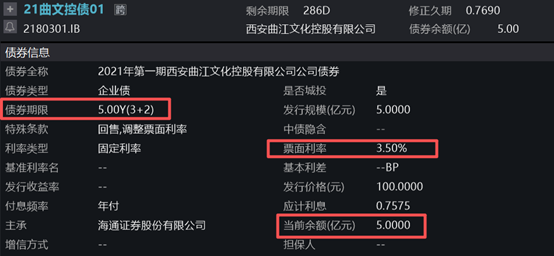 21曲文控债01(2180301.IB) 、21曲控一(152980.SH)到期日都是2026年07月29日,最新票面利率3.50%。